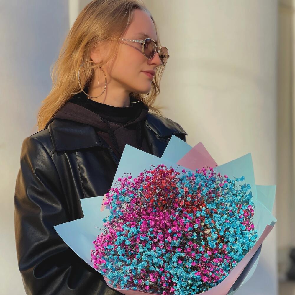 гипсофила радужная – 9 шт.Упаковка – 1 шт.Лента – 1 шт.