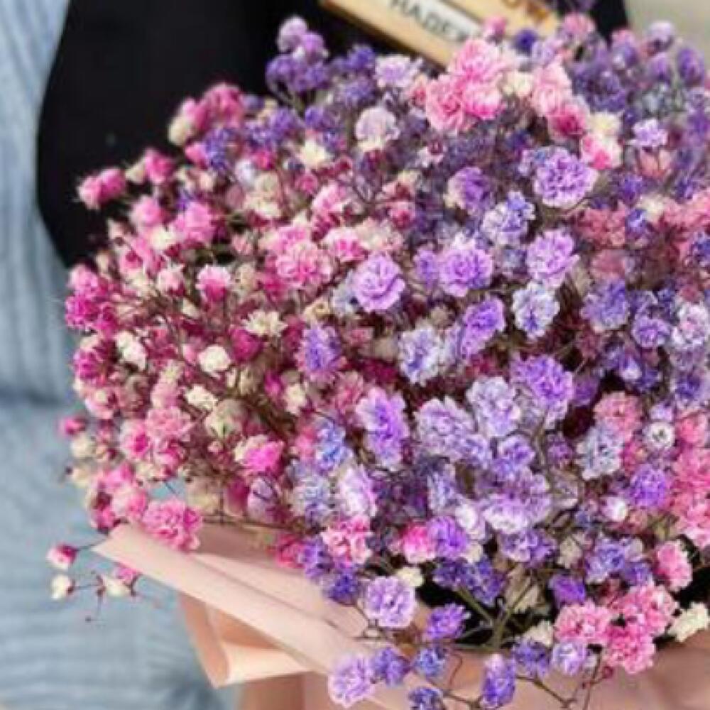 Нежная композиция из цветной гипсофилы в коробке