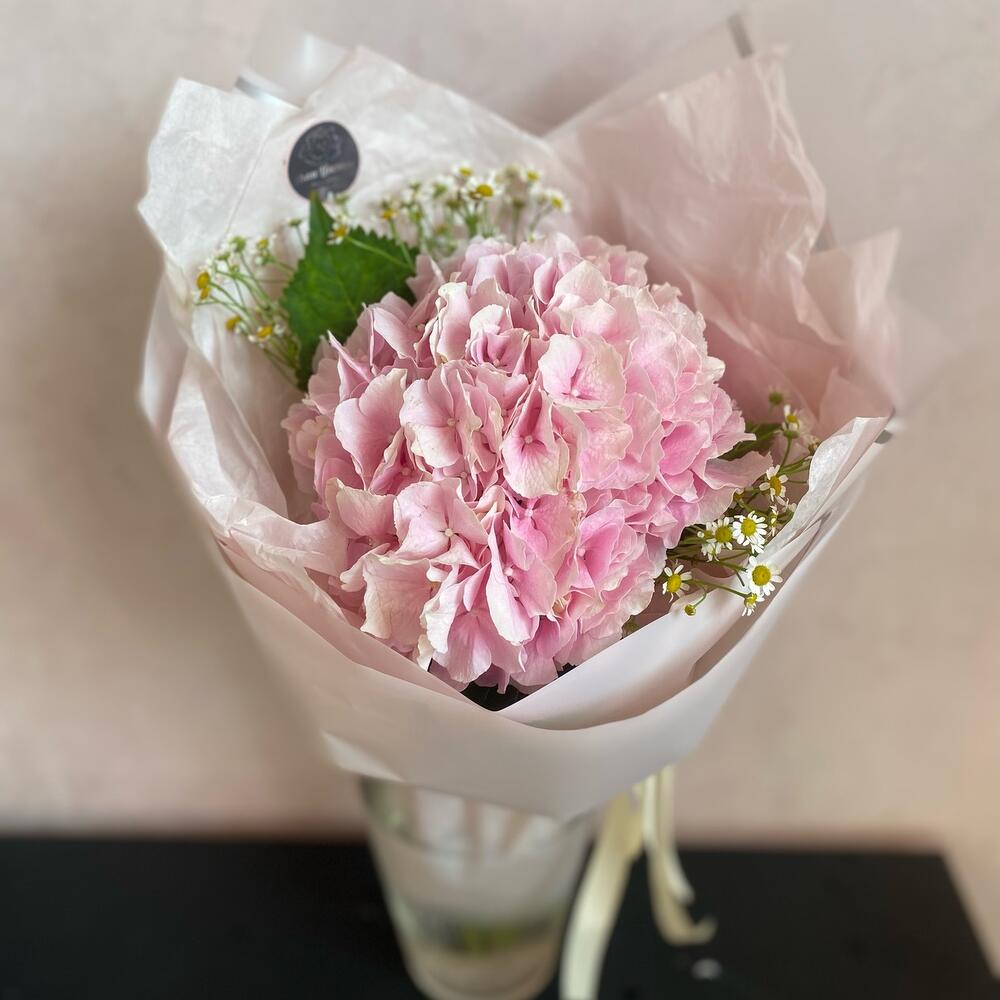 Букет с гортензией и ромашкой