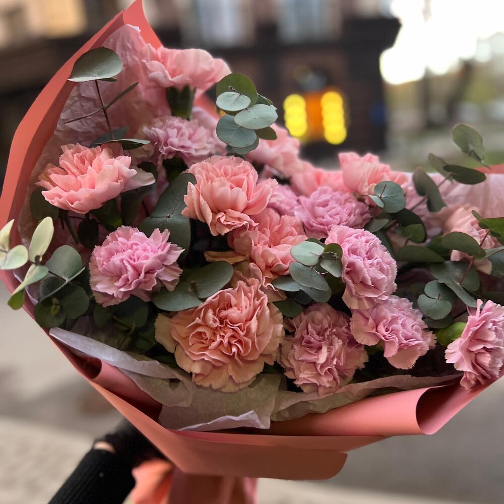 Эвкалипт – 2 шт.Фисташка – 2 шт.Упаковка дизайнерская – 4 шт.Диантус сортовой – 15 шт.