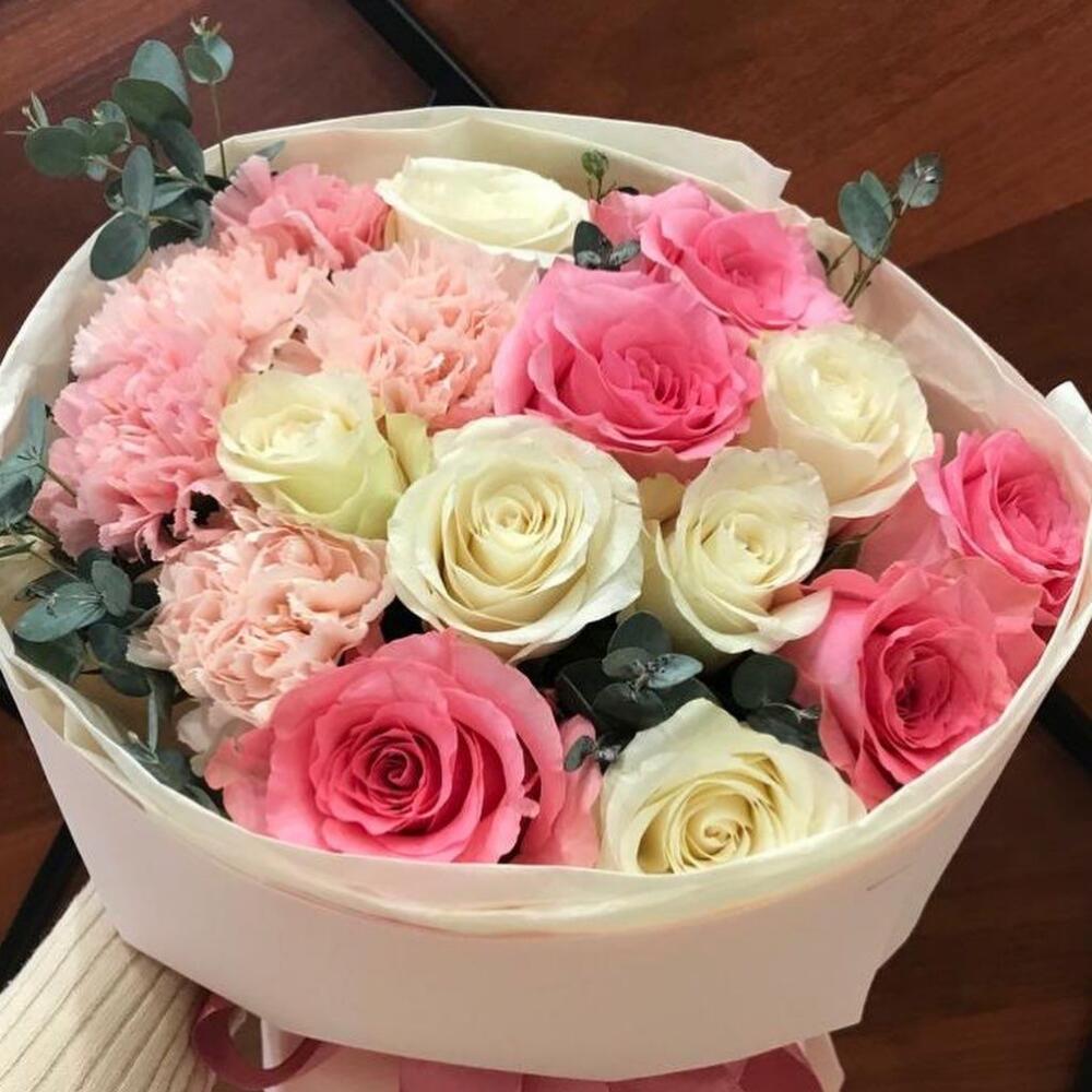 Гвоздики, Кустовые розы, Пионовидные розы, Розы