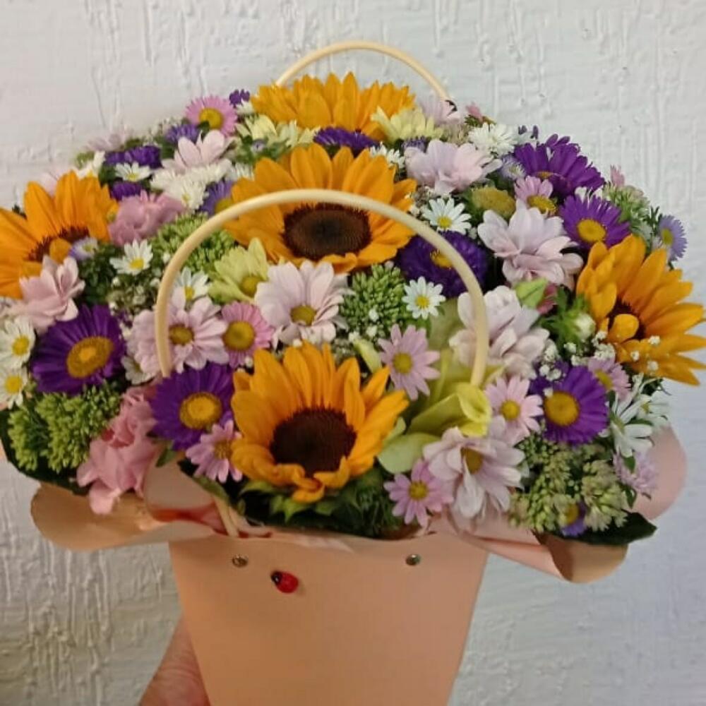 Хризантема кустовая – 5 шт. Подсолнух желтый – 5 шт.
