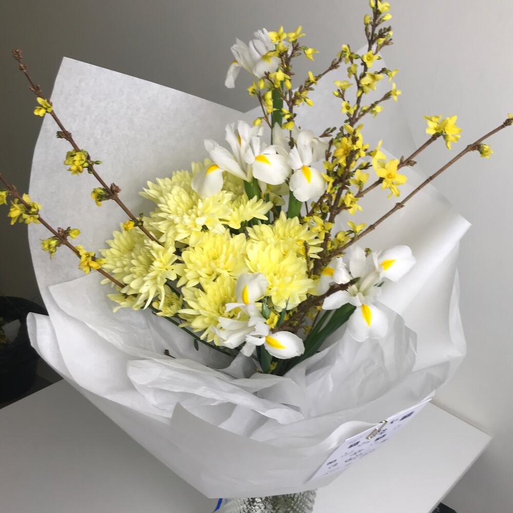 Форзиция – 4 шт.Ирис белый – 5 шт.хризаентема кустовая – 3 шт.