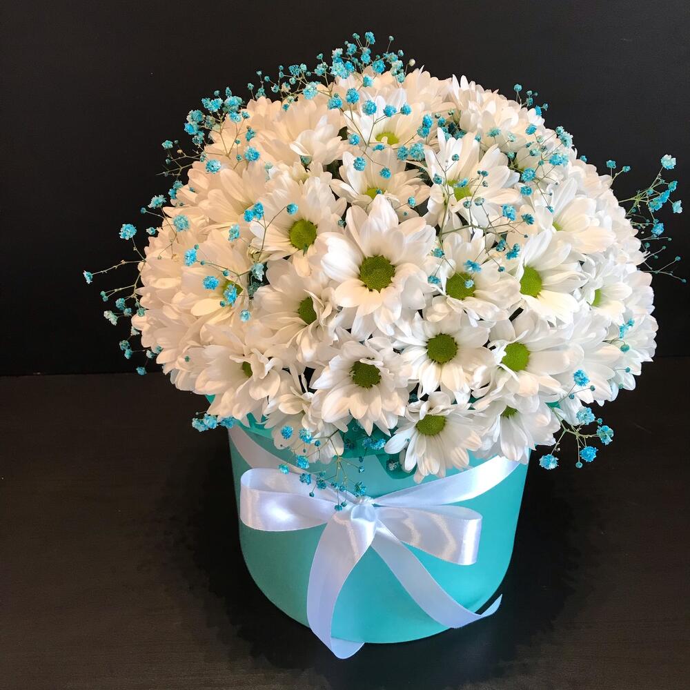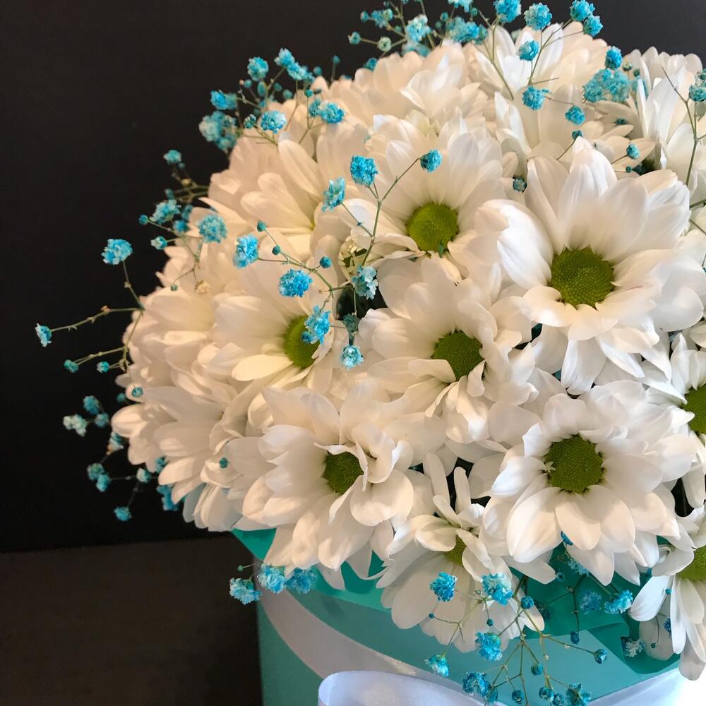 “Сиреневый туман” – композиция из гипсофилы в шляпной коробке