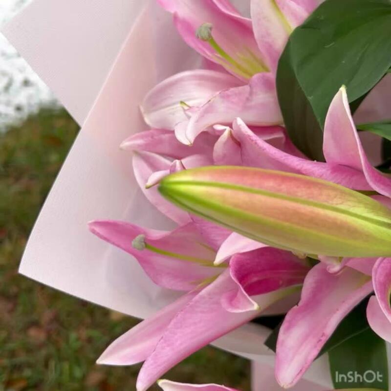 Лилия розовая – 5 шт.Тишью – 2 шт.структурированны фаомиран – 3 шт.