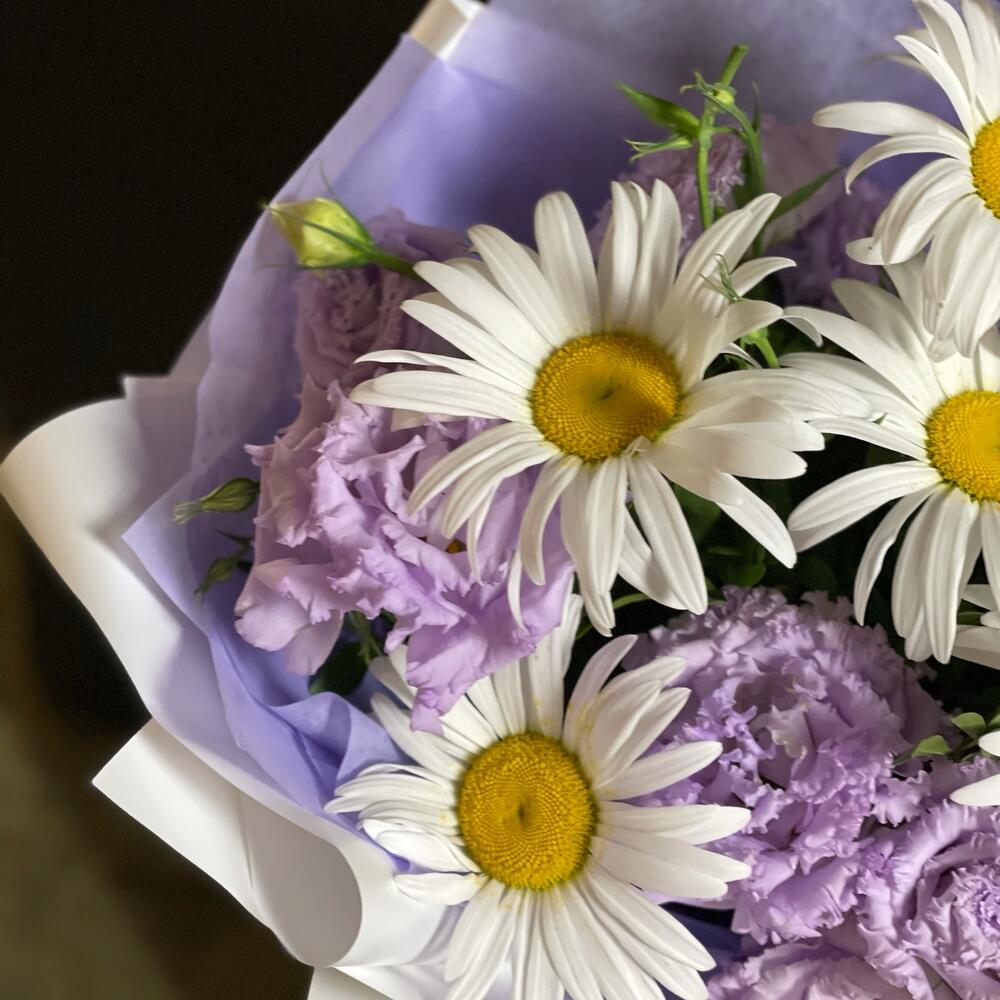 ромашка краснодар экстра – 9 шт.лизиантус краснодар – 5 шт.Авторская упаковка – 1 шт.