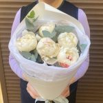 Белые пионы с эвкалиптом 5штук(сб032)