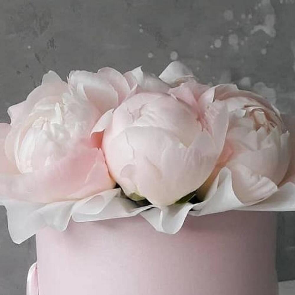 Нежно розовые пионы в коробке