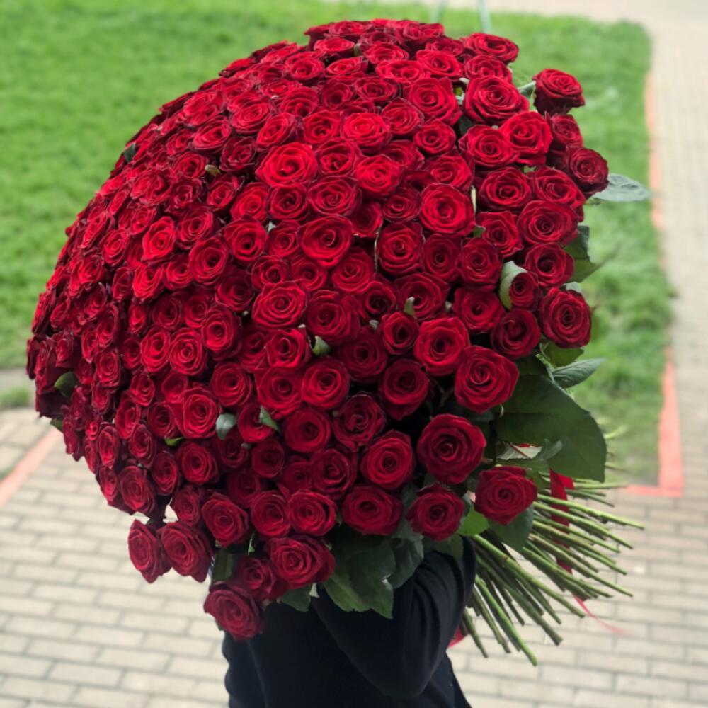 Потрясающий огромный букет из 301 розы доступен для заказа. Наши профессиональные флористы соберут для Вас идеальную форму букета, а внимательные и пунктуальные курьеры доставят заказ точно в срок.