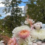 Авторский букет с хризантемой и пионовидной розой