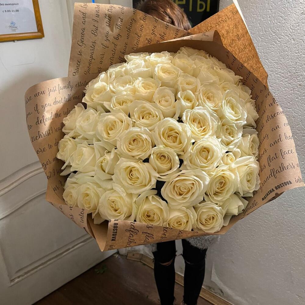Белые розы 51 штука 70 см