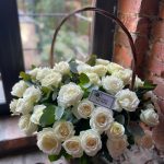 Корзина – 1 шт.Оазис – 2 шт.Эвкалипт – 10 шт.Роза – 51 шт.