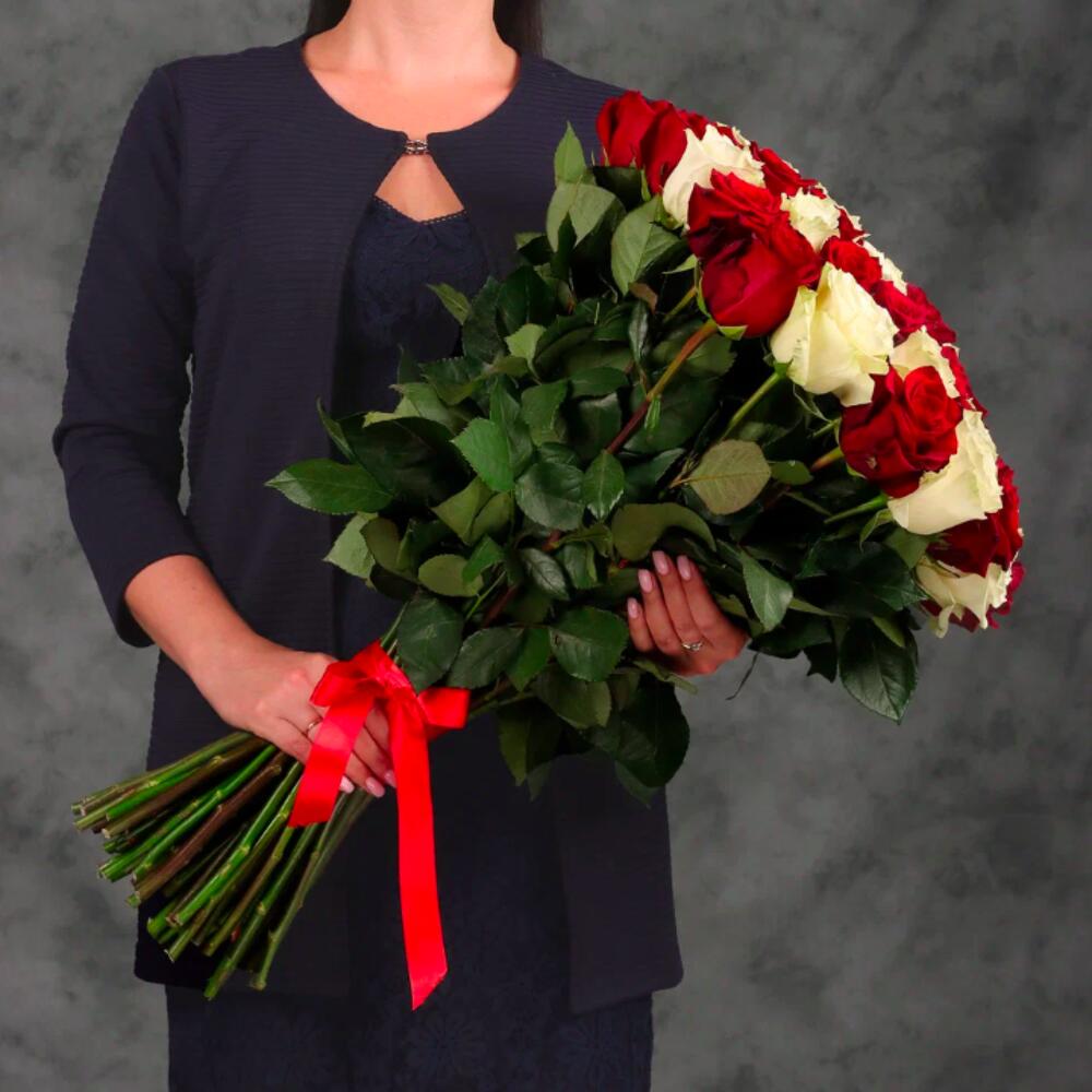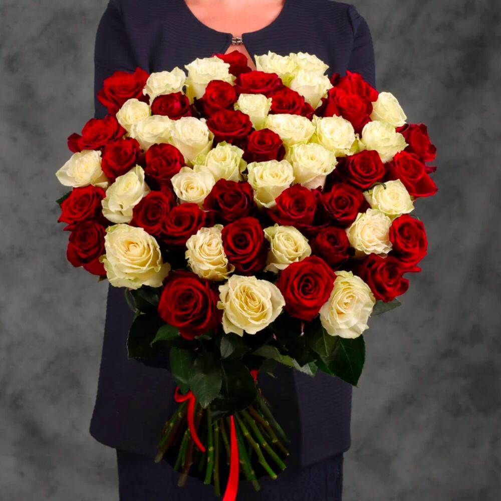 Букет 55 красных и белых роз