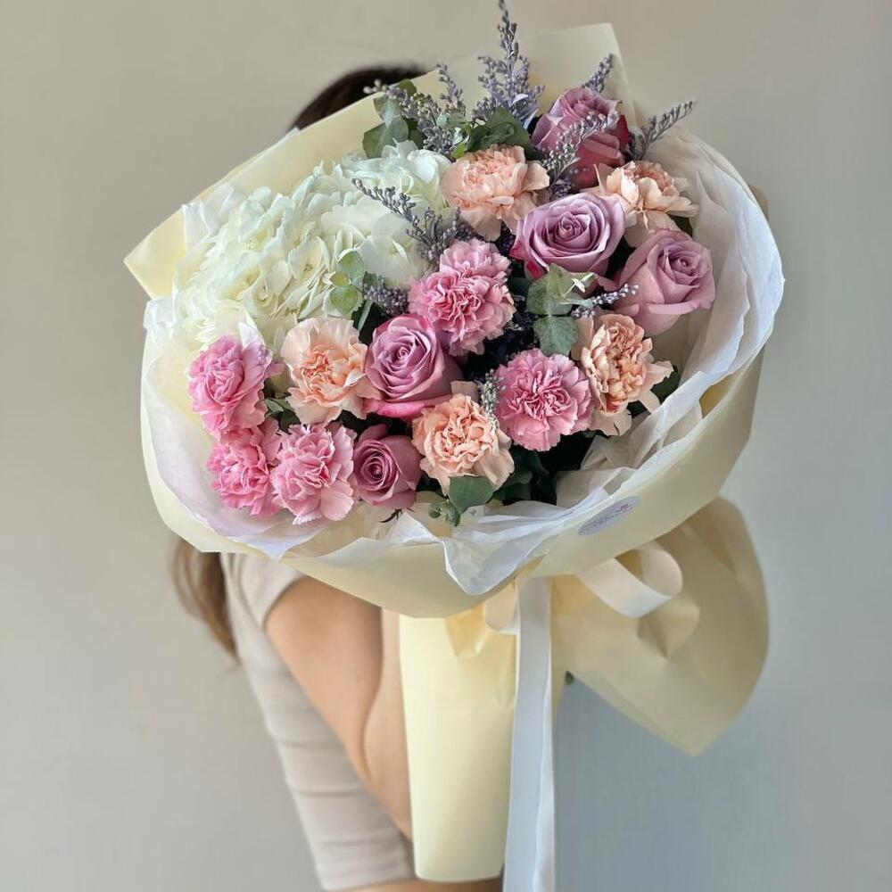 Гвоздики, Кустовые розы, Лизиантусы, Пионовидные розы, Розы