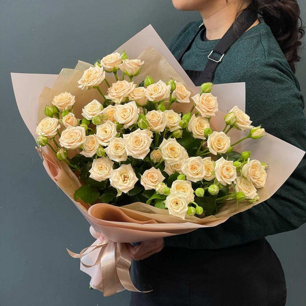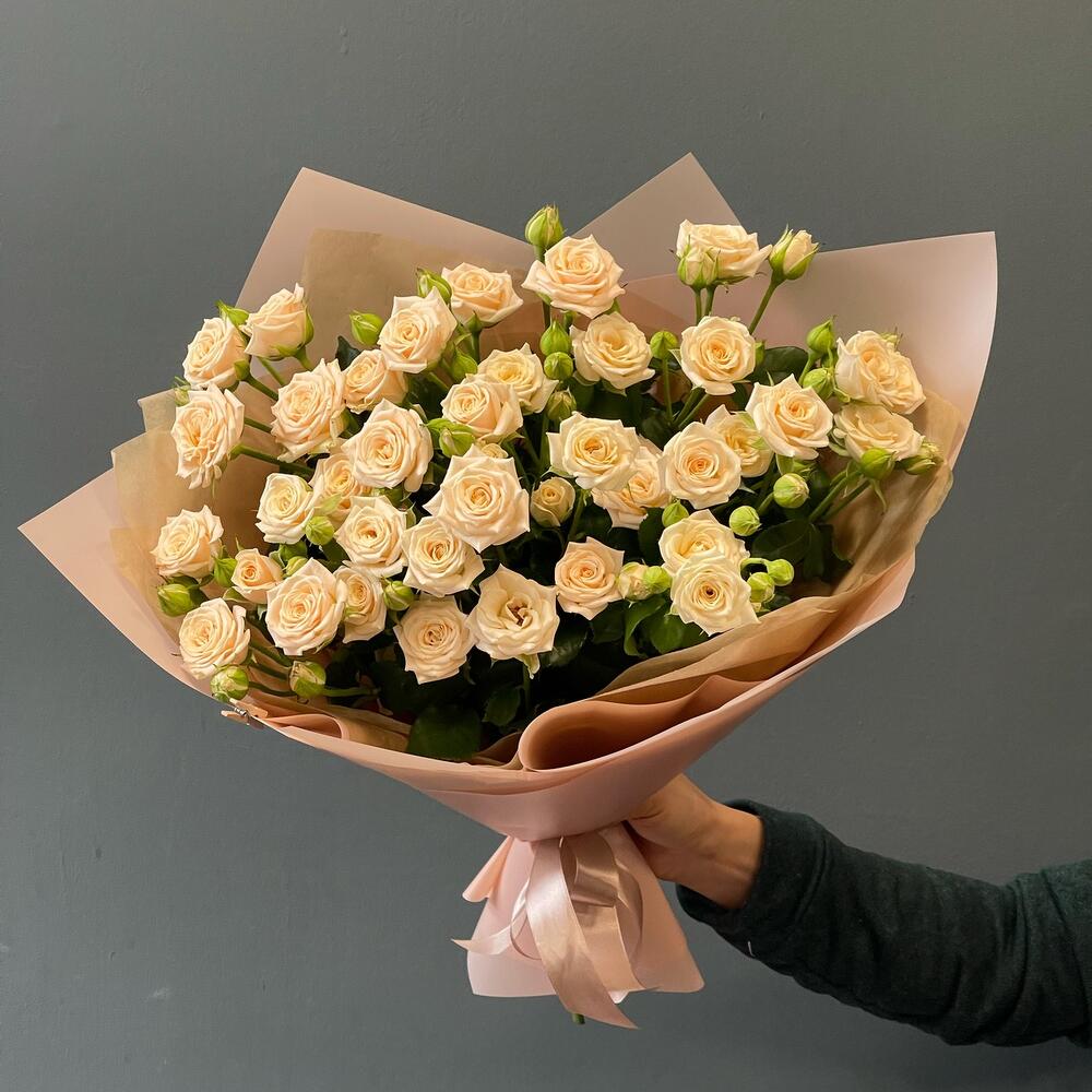 Букет из кремовых кустовых роз "Тоффи"