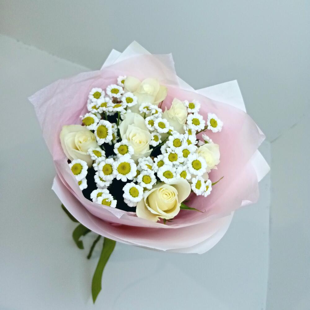 Букет из роз белых и Сантини