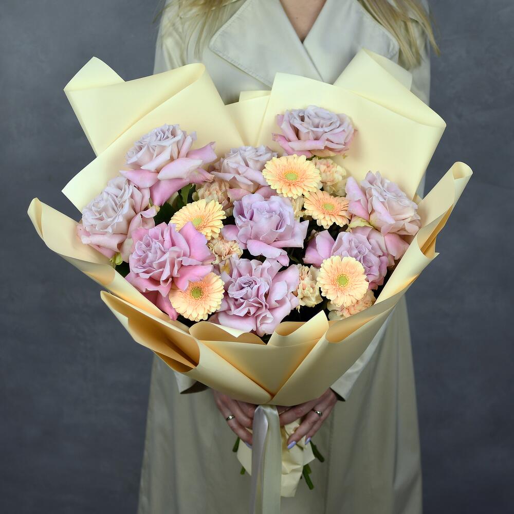 Диантус кремовый – 7 шт.гермини кремовая – 5 шт.роза французская фейт – 9 шт.