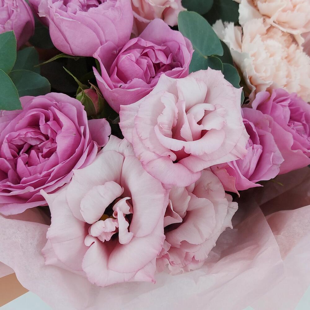 Категорий: Гвоздики, Кустовые розы, Лизиантусы, Пионовидные розы, Розы
