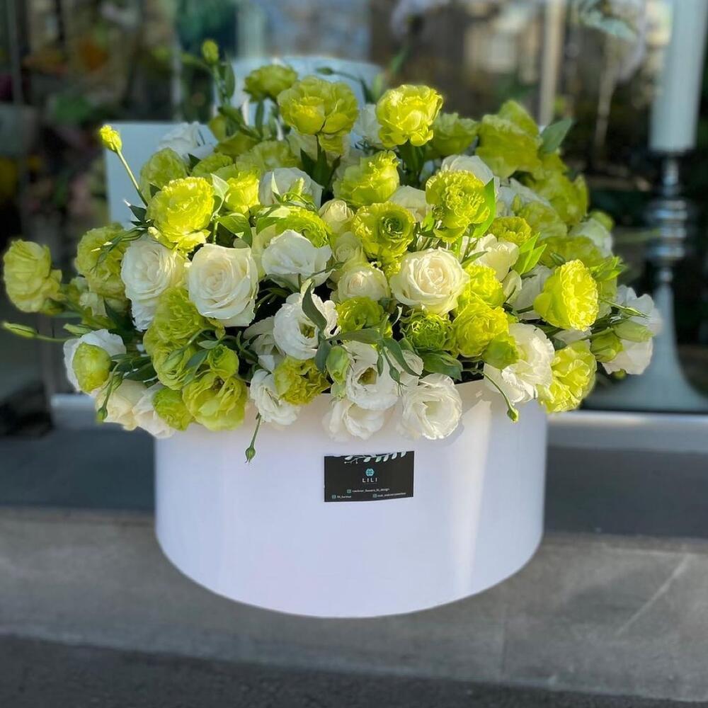 “Эвкалиптическая роскошь” гортензия и пионовидная кустовая роза