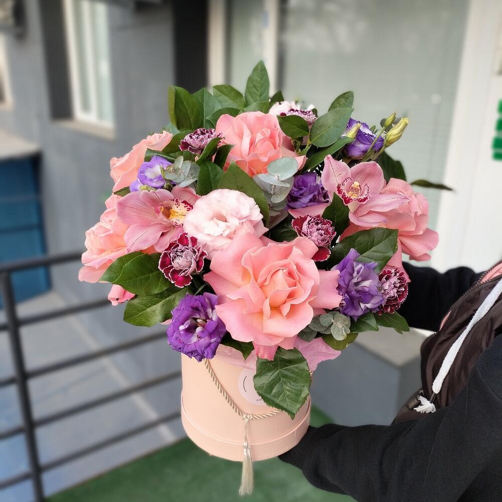Гвоздики, Кустовые розы, Лизиантусы, Пионовидные розы, Розы