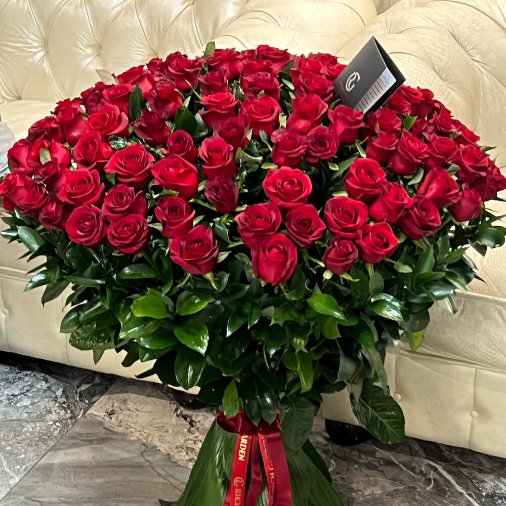 Метки: 101 роза, от 5000 руб, Роза 100 см