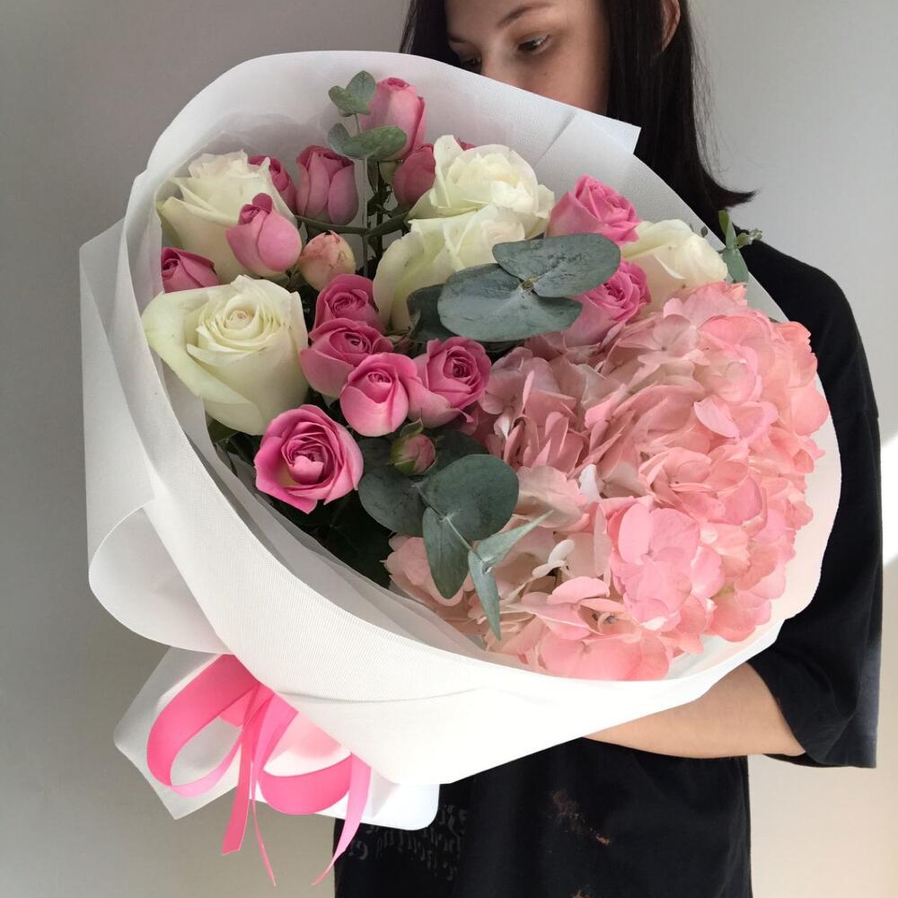Гвоздики, Кустовые розы, Пионовидные розы, Розы