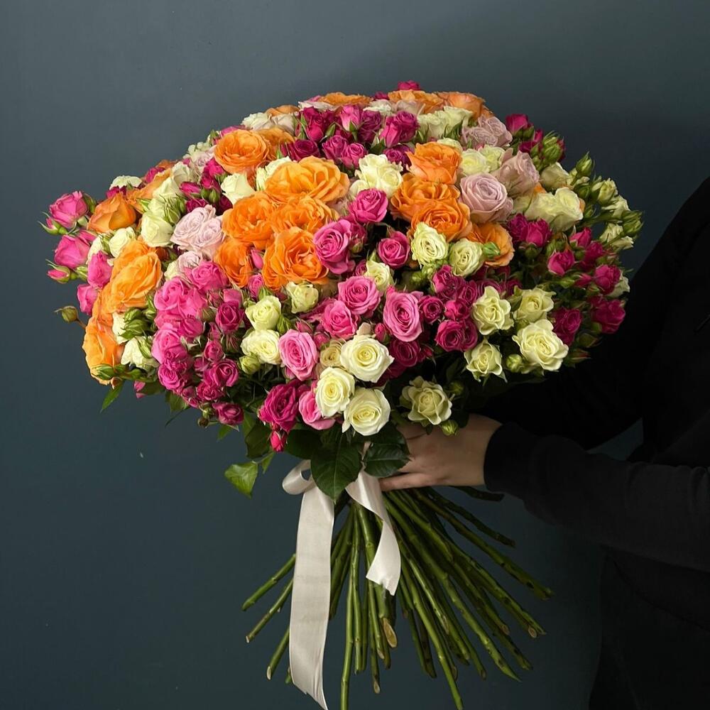 Гвоздики, Кустовые розы, Лизиантусы, Пионовидные розы, Розы