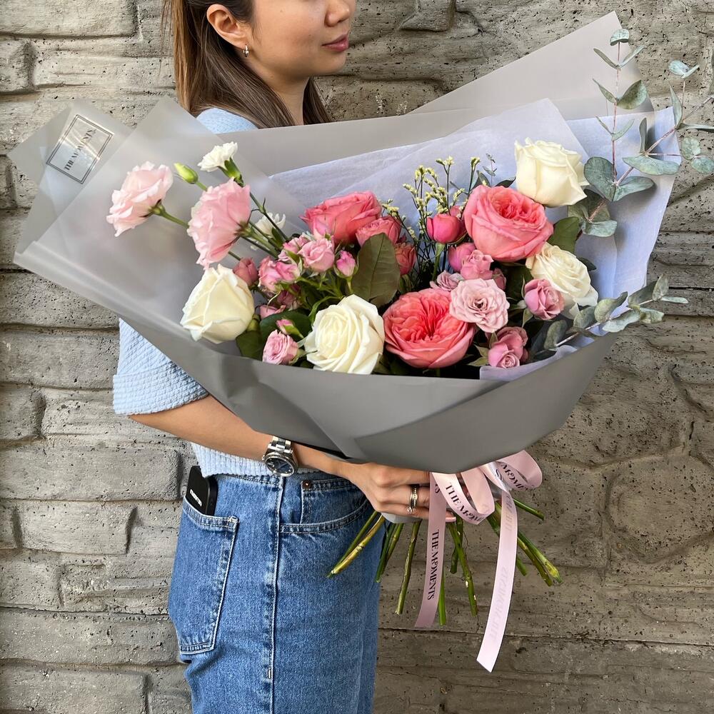 Гвоздики, Кустовые розы, Лизиантусы, Пионовидные розы, Розы