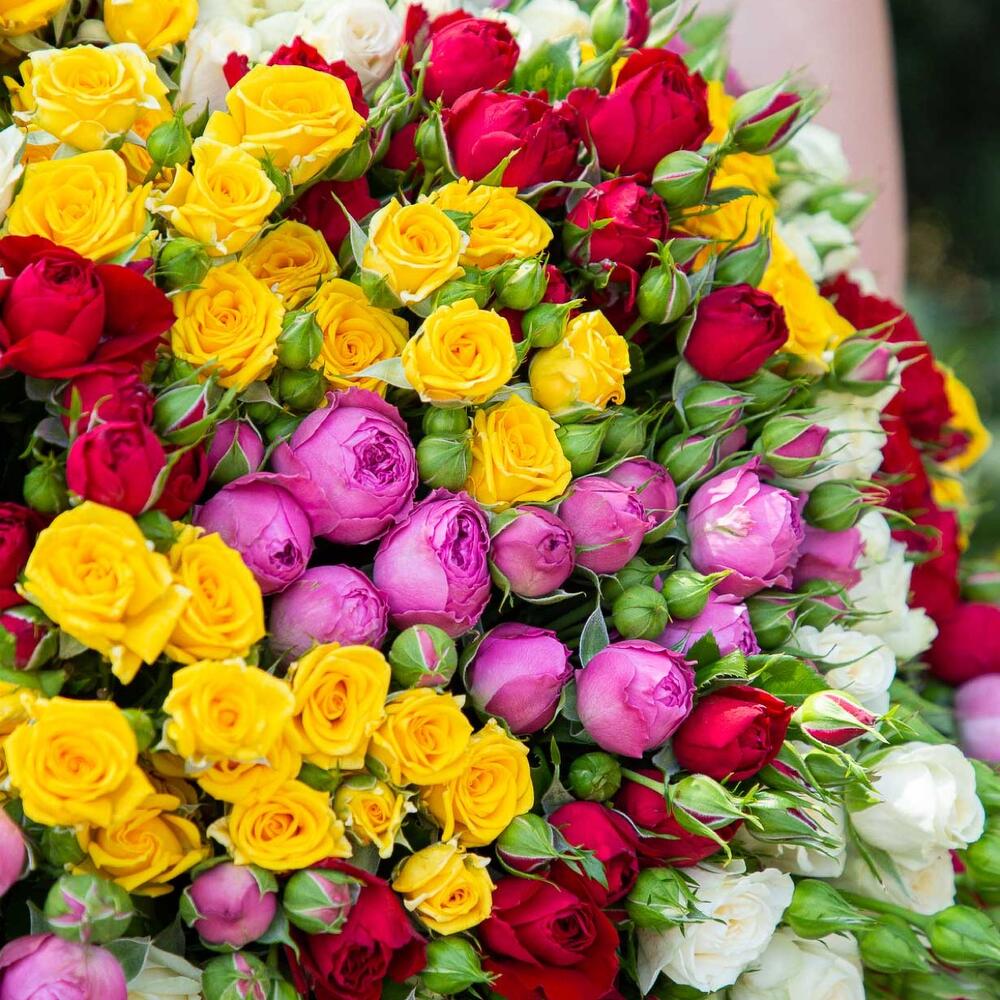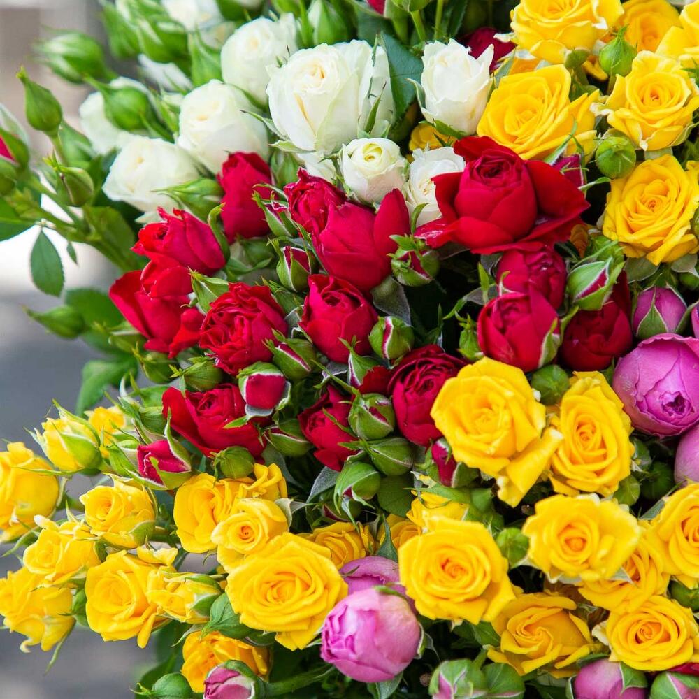 Гвоздики, Кустовые розы, Лизиантусы, Пионовидные розы, Розы