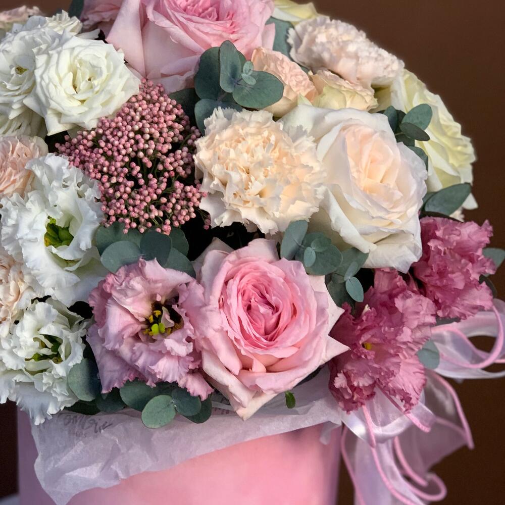 Гвоздики, Кустовые розы, Лизиантусы, Пионовидные розы, Розы