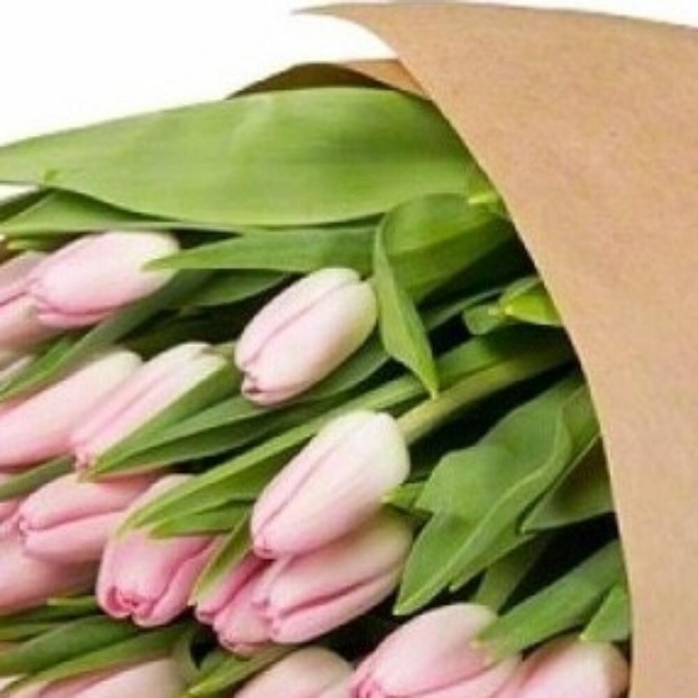 Нежно розовые тюльпаны в крафте